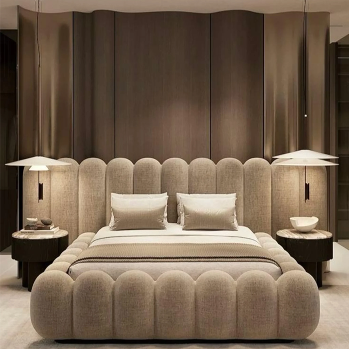 Transform your bedroom into a sanctuary of comfort and style with the Modern Luxury Bed Frame, exclusively available at Cozycraft Furniture UAE. Perfect for those who appreciate sophistication and elegance, this bed frame combines expert craftsmanship with a sleek, contemporary design, making it the ideal centerpiece for any modern space. With its clean lines, minimalist profile, and sturdy construction, it offers both durability and timeless beauty. The chic upholstered finish, available in premium fabric or refined leather, adds a plush touch while effortlessly blending with various décor styles—from modern to transitional—thanks to its versatile neutral tones. Designed with both aesthetics and practicality in mind, the high-quality upholstery ensures lasting comfort and resilience, while the solid wood or metal frame provides strong, stable support. The low-profile silhouette further enhances the bed’s streamlined, luxurious appearance.