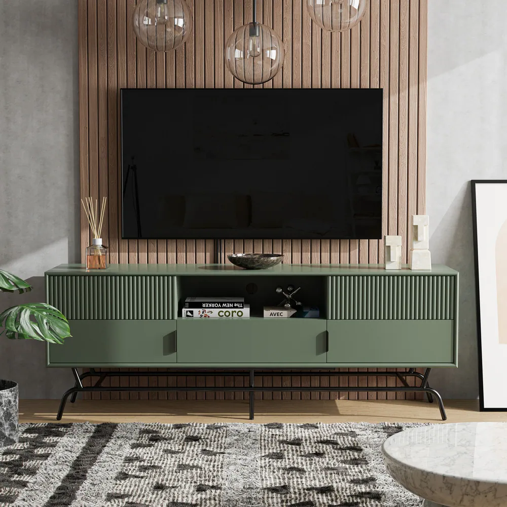 Upgrade your home entertainment experience with the Modern 60-Inch 3-Drawer Media Cabinet TV Stand from Cassavalli. Designed to combine style and functionality, this TV stand is an ideal addition to any modern living space, offering ample storage and a sleek look that complements your décor. With its generous 60-inch width, it easily accommodates large flat-screen TVs, making your entertainment setup the focal point of the room. The three spacious drawers provide plenty of room to store media accessories like remote controls, cables, and DVDs, helping keep your space organized and clutter-free. Additionally, open shelving offers perfect storage for gaming consoles, sound systems, or decorative pieces, balancing practicality with aesthetic appeal. Dimensions: 150cm L x 45cm D x 55cm H.
